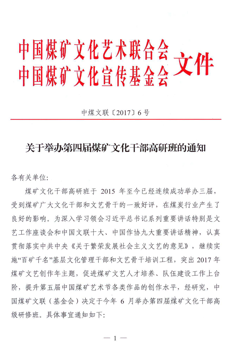 關于舉辦第四屆煤礦文化干部高研班的通知