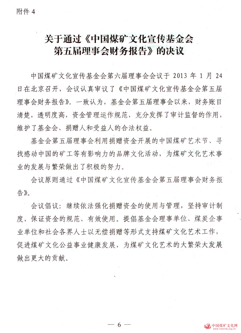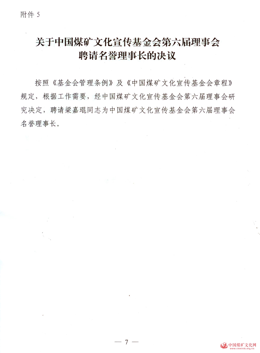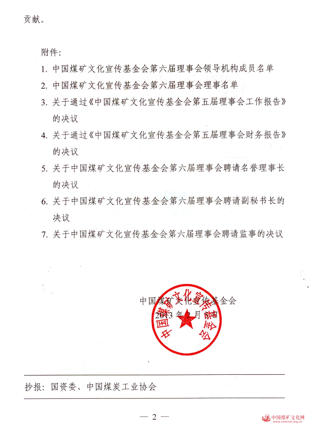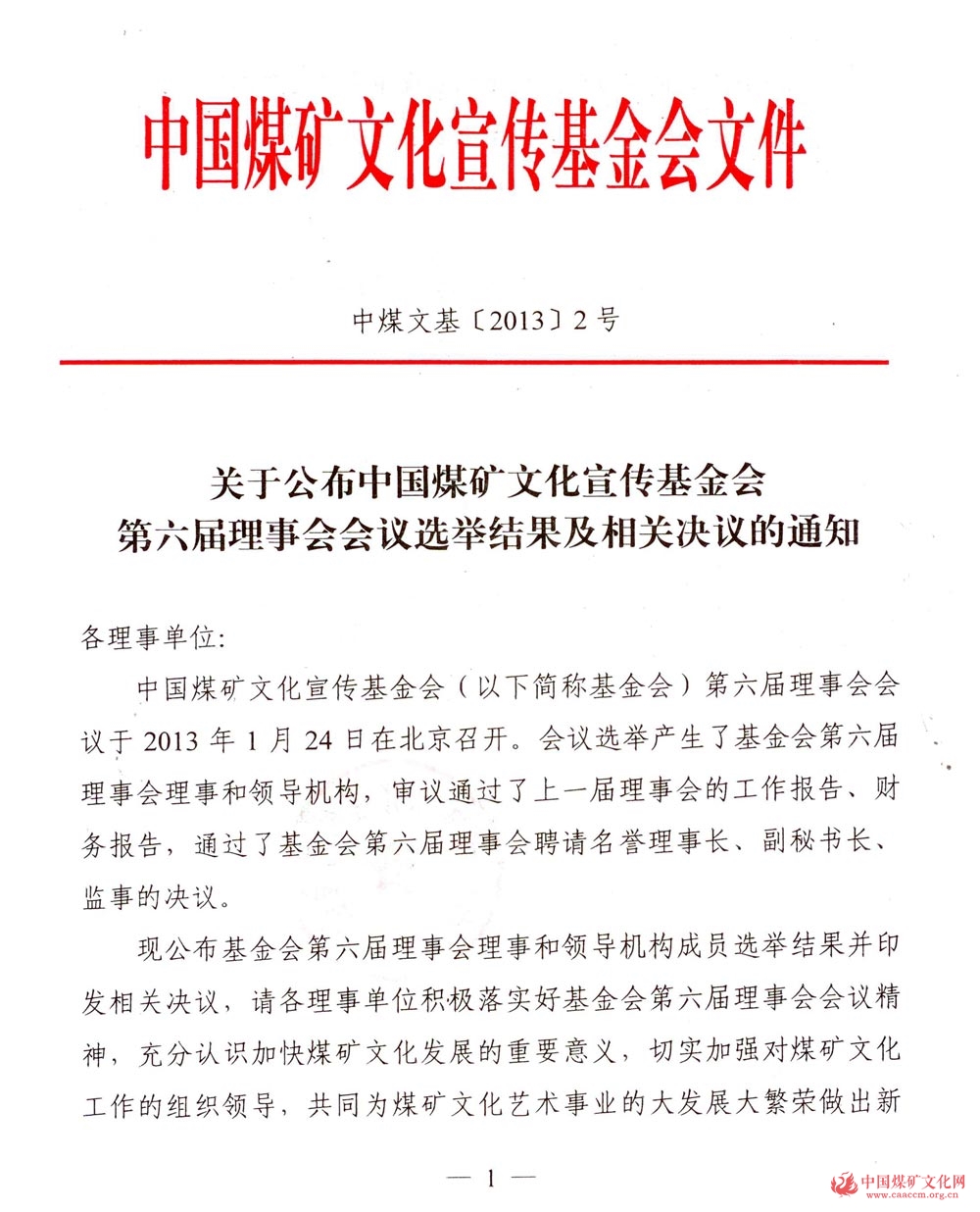 關于公布中國煤礦文化宣傳基金會第六屆理事會會議選舉結果及相關決議的通知