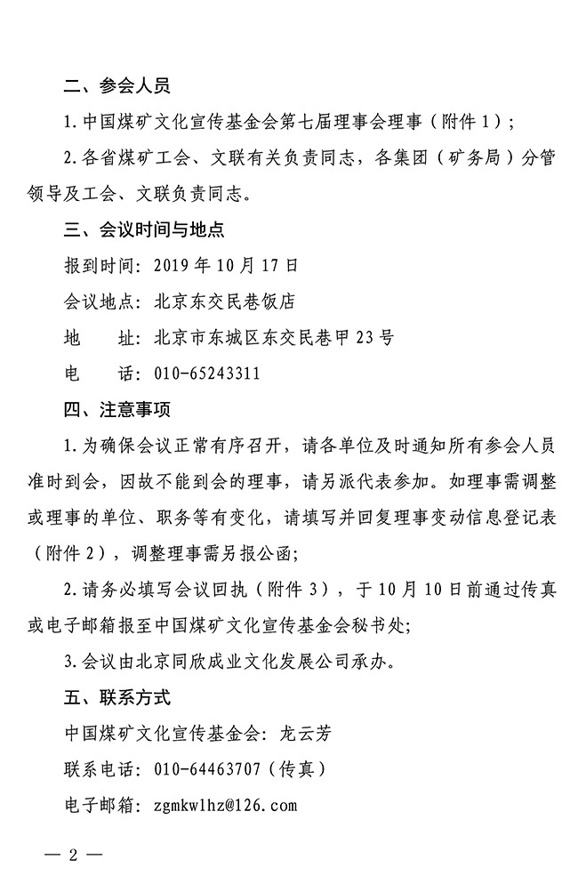 關(guān)于召開中國(guó)煤礦文化宣傳基金會(huì)第七屆理事會(huì)第二次會(huì)議的通知 來(lái)源:中國(guó)煤礦文化宣傳基金會(huì) 作者: 時(shí)間:2019-09-30 【字體:小 大】 附件:關(guān)于召開中國(guó)煤礦文化宣傳基金會(huì)第七屆理事會(huì)第二次會(huì)議的通知(PDF版)1.中國(guó)煤礦文化宣傳基金會(huì)第七屆理事會(huì)理事名單2.中國(guó)煤礦文化宣傳基金會(huì)理事變動(dòng)信息登記表3.會(huì)議回執(zhí) 智能標(biāo)簽: 中國(guó)煤礦文化宣傳基金會(huì) 相關(guān)內(nèi)容 分享到: 【打印正文】