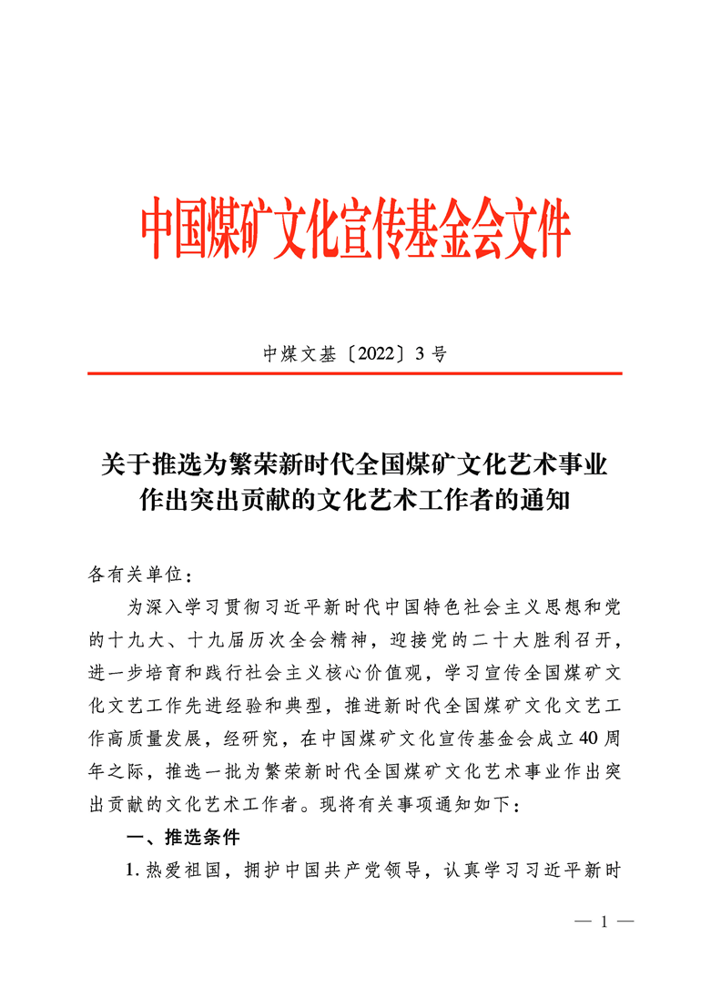 關于推選為繁榮新時代全國煤礦文化藝術事業作出突出貢獻的文化藝術工作者的通知 來源:中國煤礦文化宣傳基金會 作者: 時間:2022-09-22 【字體:小 大】 附件(1-2):為繁榮新時代全國煤礦文化藝術事業作出突出貢獻的文化藝術工作者名額分配表、推薦表 分享到: 【打印正文】