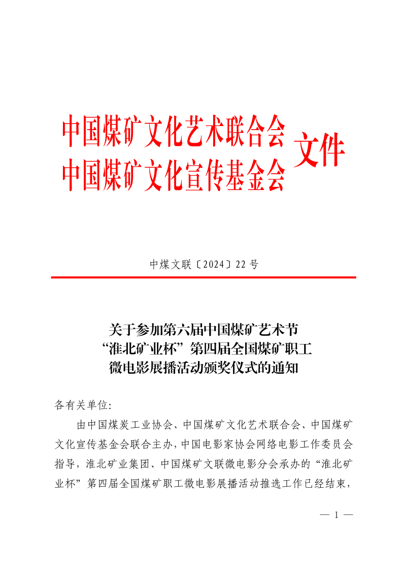 關于參加第六屆中國煤礦藝術節“淮北礦業杯”第四屆全國煤礦職工微電影展播活動頒獎儀式的通知