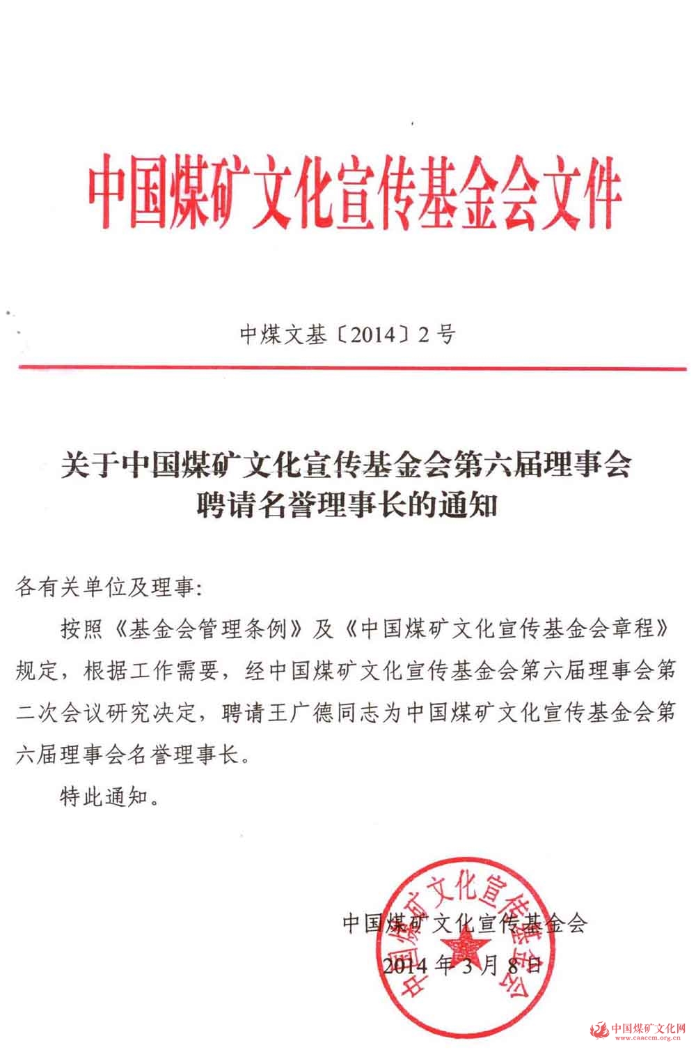 關(guān)于中國煤礦文化宣傳基金會(huì)第六屆理事會(huì)聘請(qǐng)名譽(yù)理事長的通知