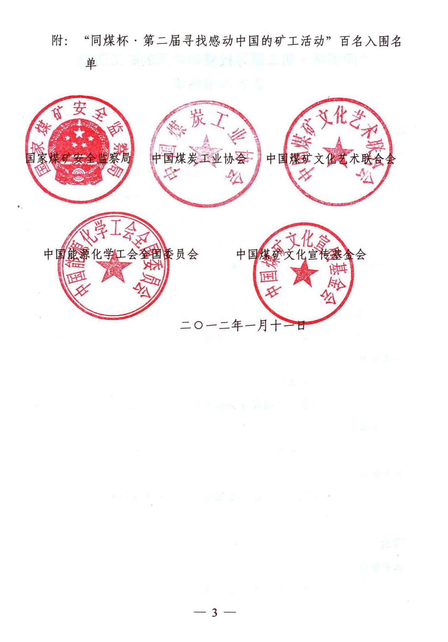關于公布“同煤杯第二屆尋找感動中國的礦工活動”百名入圍名單的通知