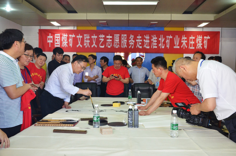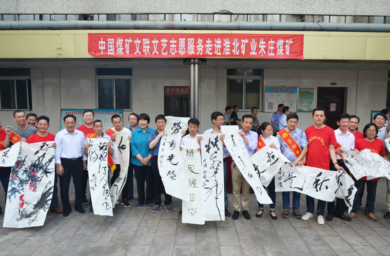 5月14日至16日,在第五個“中國文藝志愿者服務日”即將到來之際,中國煤礦文聯、中國煤礦文聯志愿者協會、中國煤礦文聯書法家協會共同組織文藝志愿者服務團到安微淮北礦業集團開展文藝志愿服務活動。中國煤礦文化宣傳基金會理事長、中國煤礦文聯副主席龐崇婭帶隊,中國煤礦文聯副主席徐迅,中國煤礦文聯副秘書長、中國煤礦文聯書協副主席兼秘書長盛軍,中國音樂家協會理事、開灤藝術團團長王海天,中國煤礦文工團說唱團演出隊隊長、青年演奏家李鑫,中國煤礦文聯美協副主席張光旭,中國煤礦文聯書協副主席馬銘、副秘書長閆增、理事胡瑞仲、理事苗超群,《中國藝術報》記者蒲波,《中國煤炭報》記者孫寶福和淮北礦區的書畫藝術家等20多人參加了文藝志愿服務。文藝志愿者和中國煤礦文聯書協主席、淮北礦業集團黨委常委、工會主席張宇,淮北礦業股份公司副總經理陳亞東一同在朱莊煤礦為礦工們送上了精彩的文藝演出和書法、美術、篆刻作品,并舉辦了聲樂講座。