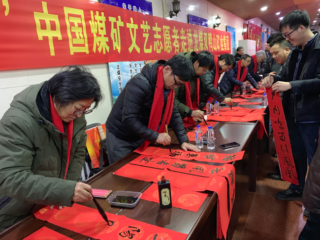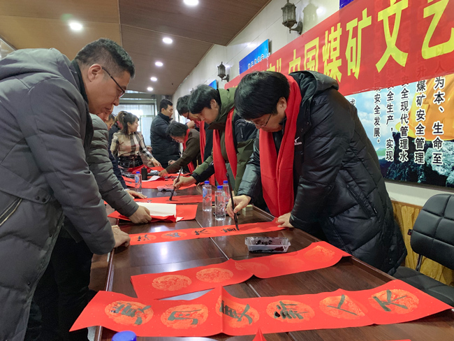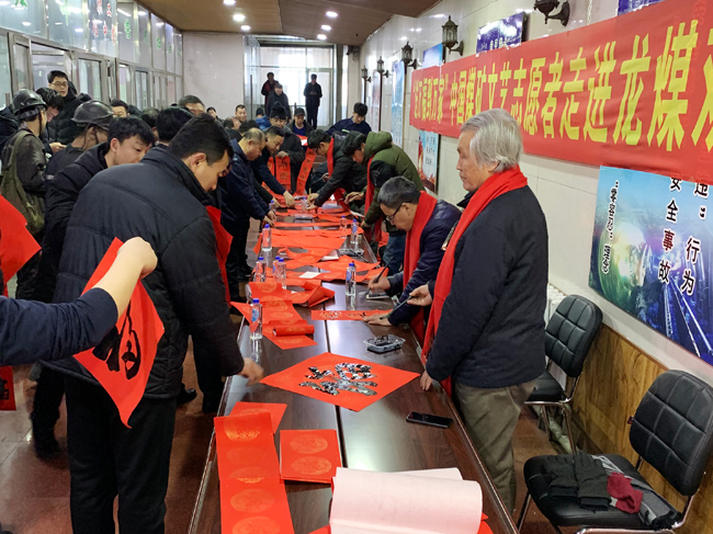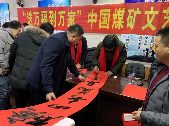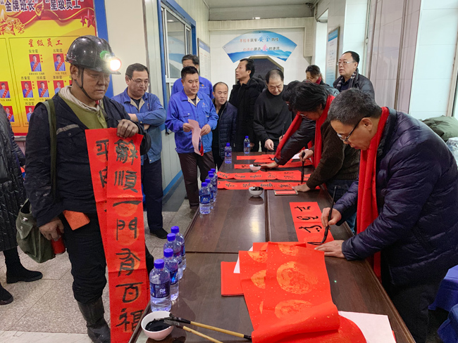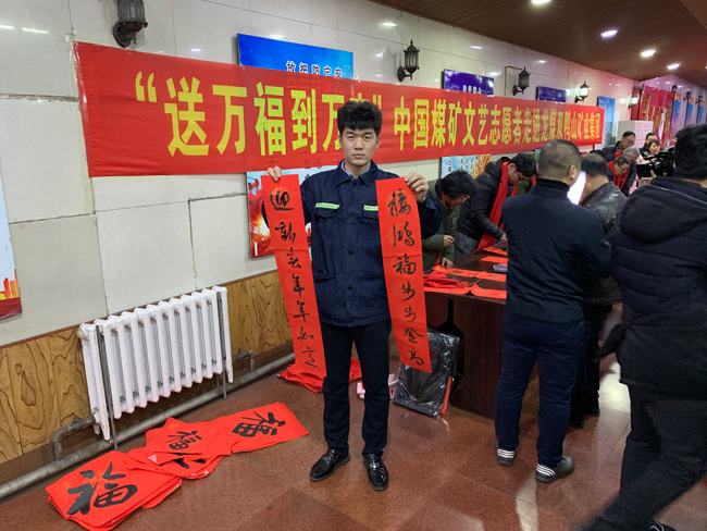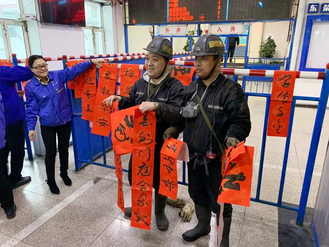 邵靜介紹到:“咱們安排的時(shí)間,正好是井下一線(xiàn)礦工們升井的時(shí)候,工人們結(jié)束了井下的工作之后,能夠看到書(shū)法家為他們現(xiàn)場(chǎng)創(chuàng)作作品,能夠在第一時(shí)間拿到這些寫(xiě)著紅彤彤的“福”字和帶有“安全為天”“幸福美滿(mǎn)”等字樣的春聯(lián),這不僅是安全生產(chǎn)文化宣傳,也是給他們最真誠(chéng)的新春祝福。”