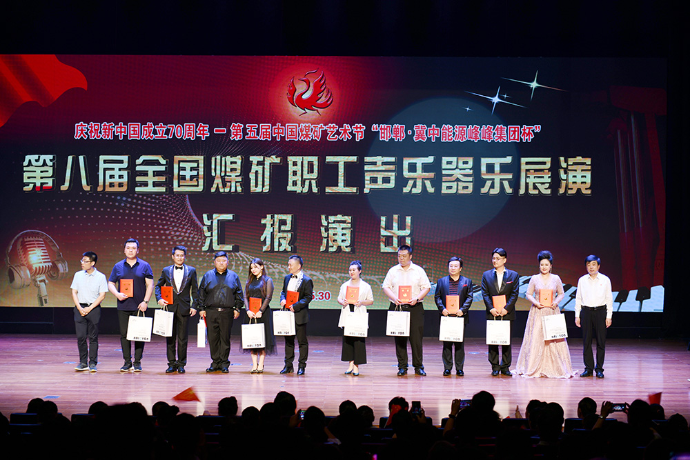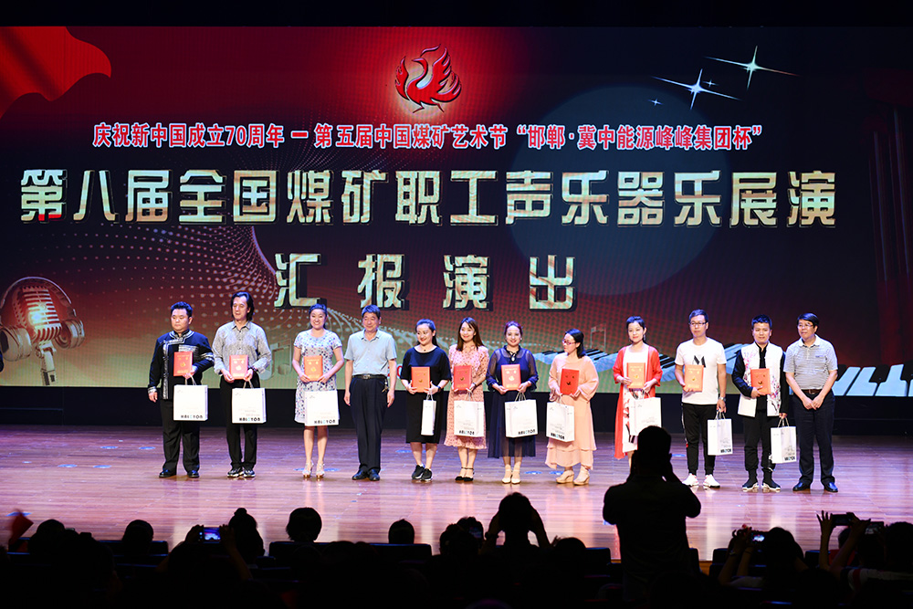 5月28日至31日,由中國煤炭工業協會、中國煤礦文化藝術聯合會、中國能源化學地質工會全國委員會、中國煤礦文化宣傳基金會聯合主辦的“慶祝新中國成立70周年”第五屆中國煤礦藝術節“冀中能源峰峰集團杯”第八屆全國煤礦職工聲樂器樂展演暨第十二屆中國音樂金鐘獎煤礦選拔賽在河北省邯鄲市成功舉辦。期間,來自全國煤炭行業20個單位的67個聲樂器樂作品表演者共81人參加現場展演,并進行了精彩紛呈的匯報演出。