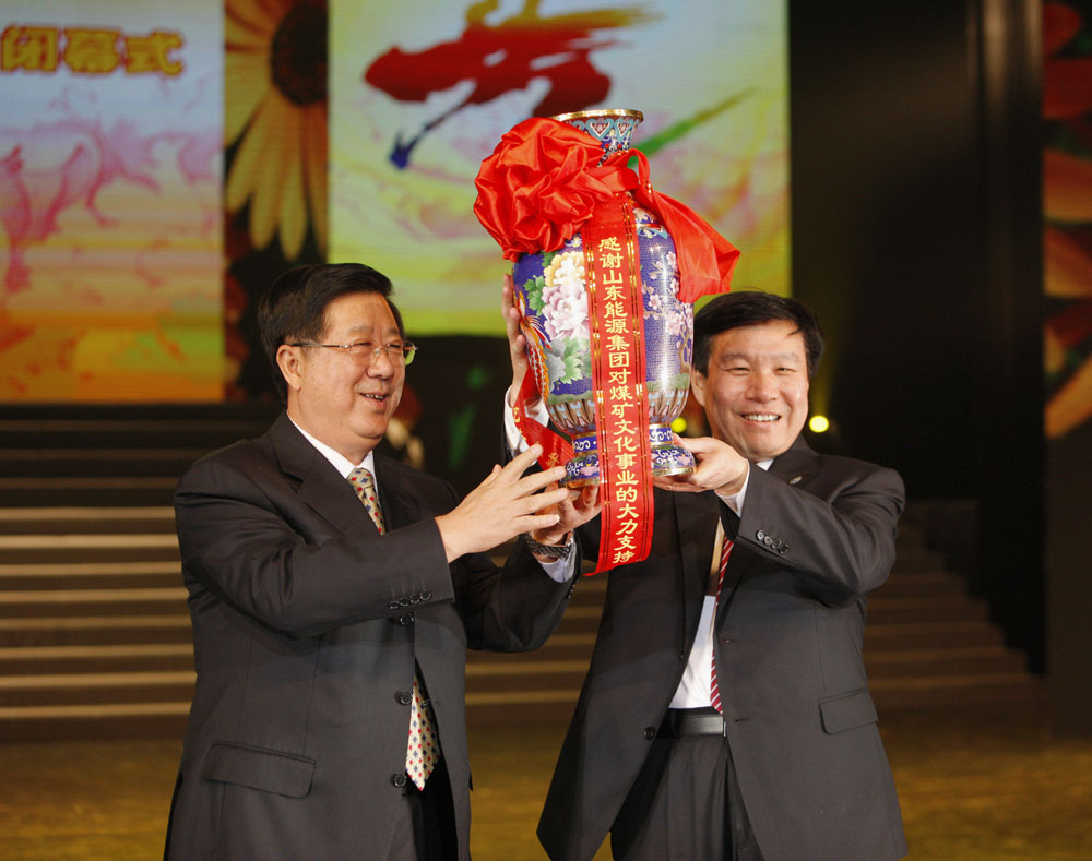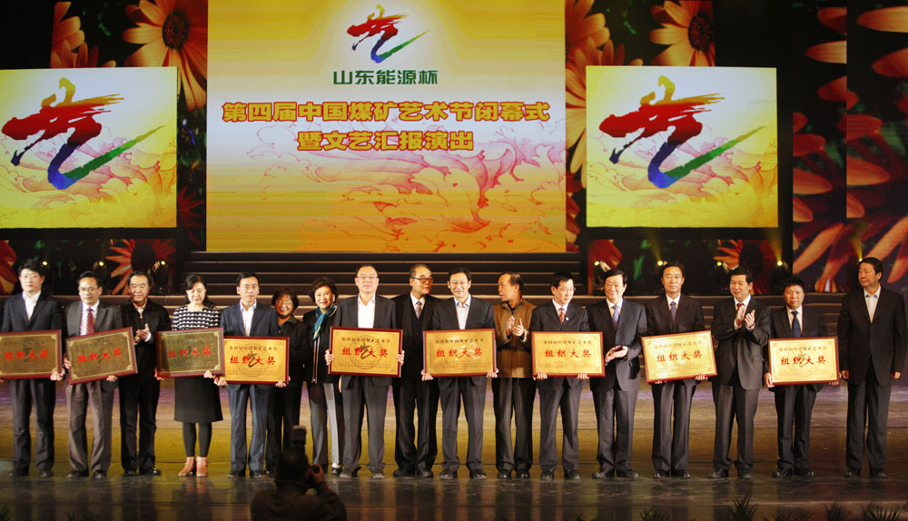 楊元元、李世明、夏潮、白庚勝、劉蘭芳、濮洪九、路耀華、趙岸青、張文祥、黃毅、王俊治、宋元明等領導上臺為第四屆中國煤礦藝術節組織大獎獲獎單位頒獎