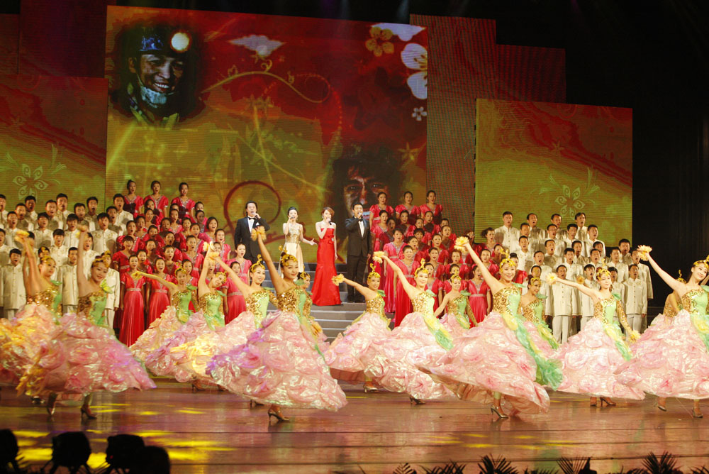 第四屆中國煤礦藝術節匯報演出《太陽花開》在新創合唱《太陽花開》婉轉動聽的音樂聲中拉開序幕,來自煤炭企業的110位職工合唱演員,用優美的旋律唱出了全國550萬礦工身處和諧社會的喜悅心情。