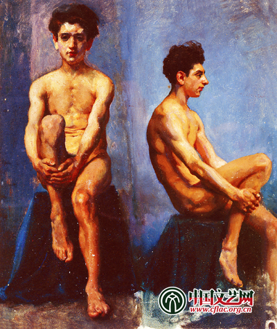 男人體正側(cè)面速寫(布面油彩) 徐悲鴻