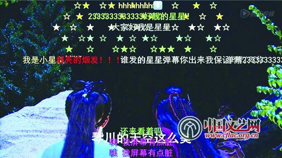 四是作為畫布的彈幕。當(dāng)彈幕固有的物理屬性與視頻畫面相融合時(shí),使得彈幕文化出現(xiàn)了表意性越發(fā)模糊而圖形屬性越發(fā)明顯的特性。這意味著在某些彈幕用戶看來,彈幕不僅僅能夠作為文字評論存在,也能夠作為圖形模塊在視頻畫面上進(jìn)行涂抹與“繪畫”。例如在某特效水平粗糙的電視劇中,有一個(gè)男女主人公一起觀賞夜景的情節(jié),鏡頭中呈現(xiàn)出的夜空一片漆黑毫無看點(diǎn),主人公卻在感嘆“夜色好美啊”。于是B站用戶忍不住出手相助,發(fā)了很多星星符號的彈幕,錯(cuò)落分布在畫面之上,組成了一片璀璨星空。這種用法,就完全拋棄了字符的表意功能。