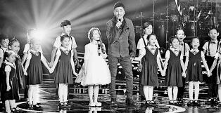 1月16日,央視大型文化節(jié)目《經(jīng)典詠流傳》節(jié)目錄制現(xiàn)場(chǎng)舉行發(fā)布會(huì)。圖為歌手沙寶亮和小朋友在現(xiàn)場(chǎng)演唱 (王旭華/攝 視覺(jué)中國(guó)/光明圖片)
