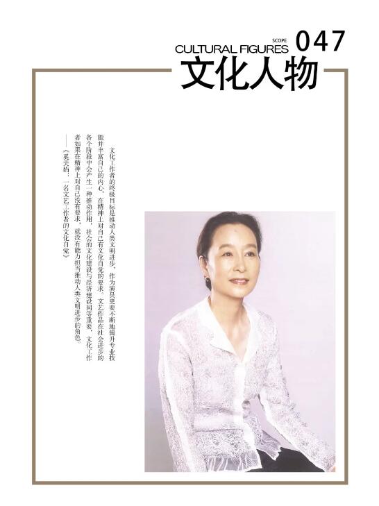 奚美娟將這些身份看作是社會對她個人的信任與肯定,同時,她也借助這些平臺提升了自己的格局?!霸谶@些身份下,我更加關心不同制度下大眾基本的生存狀態,也更理性地看待整個社會的進程。以前我僅作為青年演員時,不太會站在這種高度上思考問題,這些身份使我有了更多的角度看待世界。”除此之外,她一直認為,文化工作者的終極目標是推動人類文明進步,作為演員更要不斷地提升專業技能并豐富自己的內心,在精神上對自己有文化自覺的要求。她說:“文藝作品在社會進步的各個階段中會產生一種推動作用,社會的文化建設與經濟建設同等重要,文化工作者如果在精神上對自己沒有要求,就沒有能力擔當推動人類文明進步的角色?!?/p>
