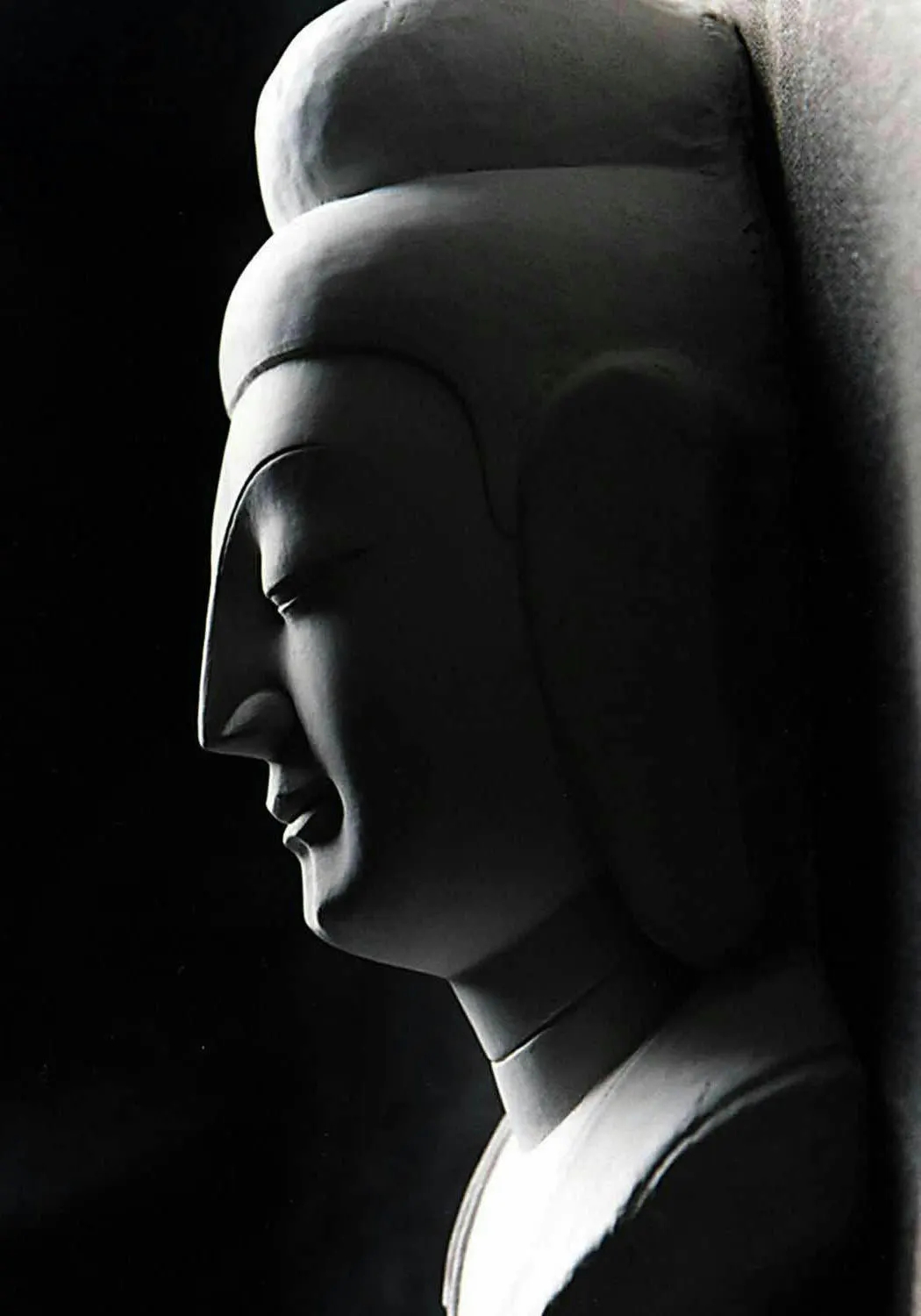 第五窟前室的一尊佛像,形象俊美、神態寧靜,雕刻手法簡約到極致,一派大家風范。超然的神韻是作者心境的投射,是石窟開鑿晚期秀骨清相風格的代表作。佛像的眼睛不刻瞳孔,倒使眼神更加安詳靈動。(其實石窟群中所有佛像的眼睛原本都是古希臘造像風格,是不刻瞳孔的,幾尊大佛的黑瞳孔是后人敷泥彩畫時強加上去的。)第十八窟東側弟子迦葉的身軀全部風化,唯獨突出在崖壁的頭部奇跡般地保存下來。頭部大塊面的雕刻手法,冼練、灑脫、非常生動。透過這尊高鼻深目的弟子,我們仿佛看到了來自西域的開鑿者睿智、堅毅、樂觀的笑貌音容。