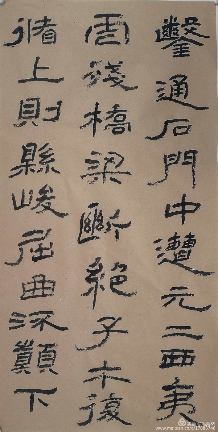近年來,雁鴻又旁及行草,苦苦臨習歷代名帖。其楷書取法魏晉,在細微處見端妙;其行草取法二王,用筆理解獨到。尤為難能可貴的是,他將古篆的結構與筆法融合在一起,并將融合后的風格表現在其行書作品中,使行書作品別具一格。近一時期,又苦橅摩崖石刻,全身心投入到中國字由石質平面向紙質平面轉換的揣摩體會。他對“道”的體悟,和對國學知識的研讀,確立了他“以大觀小”的空間敘述節奏,使得字的呈現,在空間開合上,充滿了內在張力和神完氣足的藝術美感。