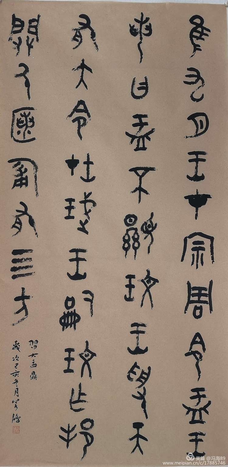 貼近古人,距離是問題。他習金文,久不得法,沒有紙質上的顯化,更看不到性情,雖極盡想象和探索卻不能與心靈所感產生共鳴。直到在博物館看到古人用毛筆書寫在甲骨、簡、帛上的墨跡、朱跡,才頓然開化:原來米早熟了,只欠過篩。一上手,就覺得順暢如流水。金文鑄造之前的模樣竟然是這樣的!往前,他看到了甲骨文的面孔;及后,文字的表情演化,清晰有序,了然于目。至此,他找到了書法語言的自我表達方式。臨寫商周金文、戰國器銘,以及齊系、晉系、楚系、秦系金文與楚簡、秦簡和漢隸等成為他的致力點,上溯三代遺風,下逮明清翰墨,舉凡殷商甲骨,周鼎金文,秦漢碑版,無不用心揣摩。