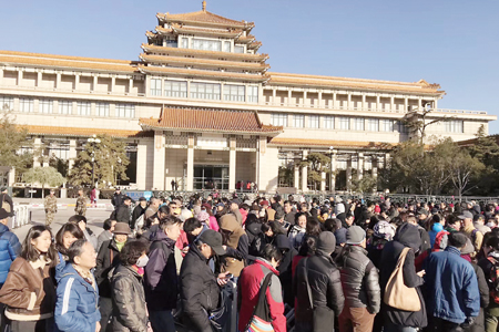 2017年11月17日至26日,由中國美術(shù)館策劃并主辦的“美在新時代——慶祝‘十九大’勝利召開中國美術(shù)館典藏精品特展”在中國美術(shù)館面向公眾開放。展覽迅速獲得觀眾叫好,超出日常參觀量的5倍之多,排隊觀展的隊伍綿延長達2公里,與11月北京凜冽的寒冬相比,場面可謂異常火爆。