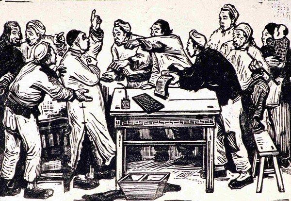 減租會(版畫) 13.5×20厘米 1943年 古元 中國美術(shù)館藏
