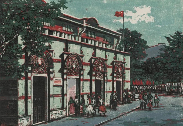 新中國成立初期誕生的美術(shù)經(jīng)典中,有不少表現(xiàn)中國共產(chǎn)黨成立這一“開天辟地的大事變”的佳作,如顏文樑油畫《南湖》、沈柔堅版畫《瞻仰》、陳逸飛與邱瑞敏合作的油畫《在黨的一大會議上》等,以不同風格、不同視角展現(xiàn)了深刻而豐富的精神內(nèi)涵。這一時期的黨史題材油畫名作有羅工柳的《地道戰(zhàn)》、王式廓的《參軍》、董希文的《開國大典》、艾中信的《紅軍過雪山》、靳尚誼的《毛澤東在十二月會議上》、鐘涵的《延河邊上》等;中國畫名作有王盛烈的《八女投江》、石魯?shù)摹掇D(zhuǎn)戰(zhàn)陜北》、葉淺予的《北平解放》、李琦的《主席走遍全國》等。這些作品都以對歷史場景和人物形象的具體描繪,展現(xiàn)了中國共產(chǎn)黨人艱苦卓絕的奮斗歷程和崇高的精神境界。雕塑名作人民英雄紀念碑浮雕、潘鶴的《艱苦歲月》等,同樣展現(xiàn)了大無畏的革命英雄主義精神。除此之外,黃胄中國畫《洪荒風雪》、潘世勛油畫《我們走在大路上》等經(jīng)典作品,小中見大,生動再現(xiàn)了中國共產(chǎn)黨團結(jié)帶領(lǐng)人民艱苦創(chuàng)業(yè)的精神風貌。