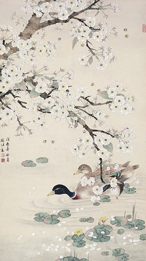 上世紀90年代,喻繼高精品佳作頻出,《杜鵑山雀》《芭蕉丹柿》《牡丹綬帶》《孔雀戲春》《荷塘群鴨》《蓮塘戲鶴圖》《初春》《茶花鸚鵡》《櫻花雙鴿》《玉蘭錦雞》《瑞鶴圖》《孔雀圖》等作品都是這一時期的代表,不僅展現了畫家擁抱生活、熱愛自然、歌頌生命的真摯情懷,也讓傳統工筆花鳥畫重新煥發新的藝術魅力。他在平凡的景物中開掘更深沉的精神內蘊,在人們喜聞樂見的風格中升華出獨特的藝術個性,讓自己的作品更加豐滿、成熟,更富有神韻和意境。這些作品明麗中見深秀,冶艷中見儒雅,溫馨璀璨而風規自遠,鋒芒內斂而光彩照人,透出的是一種至真、至美、至善的人格志趣,畫出的是新時代的繁榮和民族的燦爛。