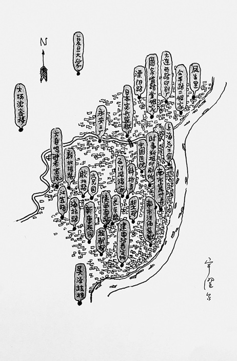 《回望》中有一張金宇澄自繪的地圖,標出父親母親于1965年之前居住過的地點,竟有近三十處,包含上海的“上只角”、“下只角”,縱貫南北,遍布市郊。