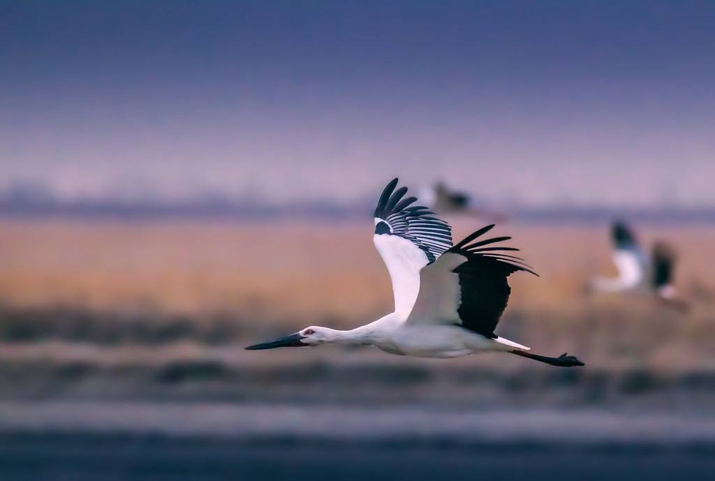 這部小說寫到了多種候鳥,而最值得我個人紀念的,當屬其中的候鳥主人公——那對東方白鸛。我愛人去世的前一年夏天,有天傍晚,也是夕陽時分,我們去河岸散步,走著走著,忽然河岸的茂草叢中,飛出一只我從未見過的大鳥,它白身黑翅,細腿伶仃,腳掌鮮艷,像一團流浪的云,也像一個幽靈。愛人說那一定就是傳說中的仙鶴,可是它緣何而來,緣何形單影只,緣何埋伏在我們所經之地,拔地而起,飛向西方?愛人去世后,我跟母親說起這種鳥兒,她說她在此地生活了大半輩子,從未見過,那鳥兒出現后我失去了愛人,可見不是吉祥鳥。可在我眼里,它的去向,如此燦爛,并非不吉,誰最終不是向著夕陽去呢,時間長短而已。因為八九十年,在宇宙的時間中,不過一瞬。我忘不了這只鳥,查閱相關資料,知道它是東方白鸛,所以很自然地在《候鳥的勇敢》中,將它拉入畫框。
