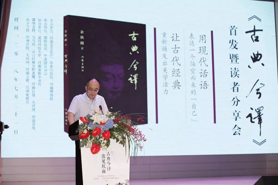新書《古典今譯》首發選擇來到河南,是因為與河南深厚歷史底蘊相契合,余秋雨現場談到莊子、談到韓愈等歷史名人時,會特別給大家強調"這也是一位河南人"。