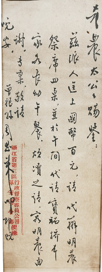 這封尺牘,入古而出新,清新雅致,厚實(shí)曉暢,周到的文字體現(xiàn)了周恩來對(duì)故土親人深沉的愛,也展示了這位偉大的馬克思主義者的高風(fēng)亮節(jié)。周恩來一生點(diǎn)滴中見原則,細(xì)微中見精神。他經(jīng)常告誡領(lǐng)導(dǎo)干部要過好思想關(guān)、政治關(guān)、社會(huì)關(guān)、親屬關(guān)、生活關(guān),保持共產(chǎn)黨人的政治操守和優(yōu)良作風(fēng)。新中國(guó)成立后,身為大國(guó)總理的周恩來與在京親屬專門談到紹興祖墳“平墳”小事。他要求不準(zhǔn)修墳,要平墳,整理出土地交公使用。為做好大家思想工作,他說:“平墳的問題,也不能由我一個(gè)人決定,以后如有機(jī)會(huì)到紹興,我要找本家開個(gè)會(huì),把墳平了。”后來,遵照他的意見,紹興的周家將幾處祖墳都平了,棺木全部就地深埋。