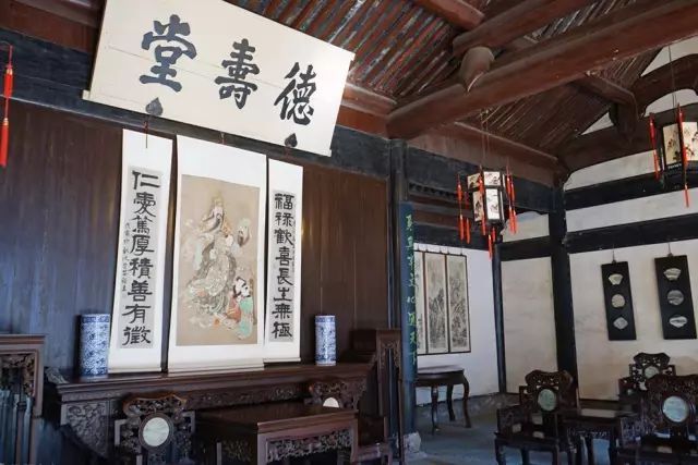 老臺門的廳堂是周氏族人的公共活動場所,以作喜慶、祝福和宴會賓客之用。廳堂正上方高懸一塊大匾“德壽堂”,兩旁柱子上有一副紅底黑字的楹聯(lián):“品節(jié)詳明德性堅(jiān)定 事理通達(dá)心氣和平”。