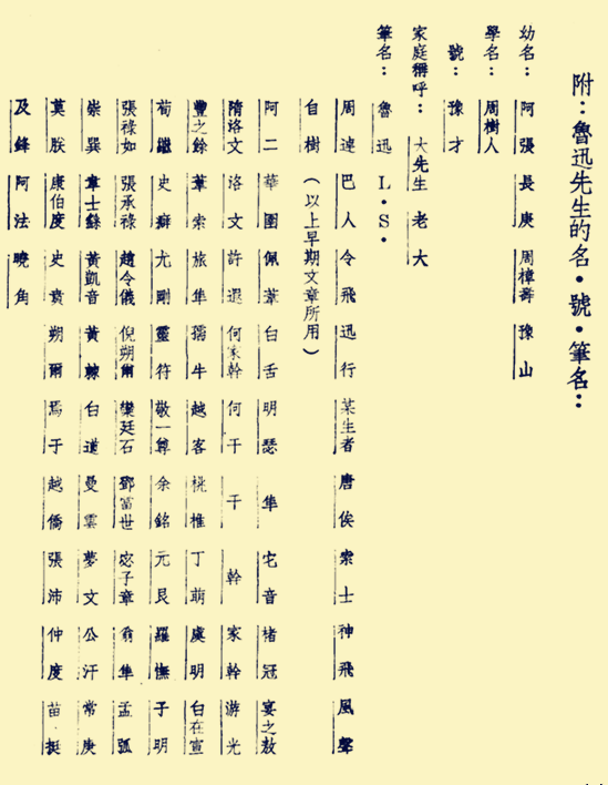 附二:魯迅的幼名、別號(hào)和家庭稱呼