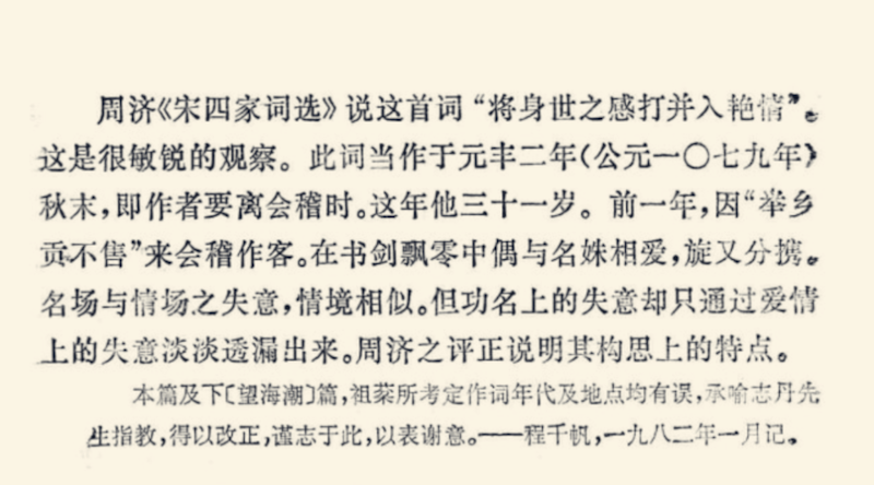 對(duì)比之下,顯而易見。正如程千帆附記所說,初版所考定的“作詞年代及地點(diǎn)均有誤”,因而其詞中所寄寓的情感,也就不同了。這對(duì)于我們理解這首詞,當(dāng)然是很重要的。
