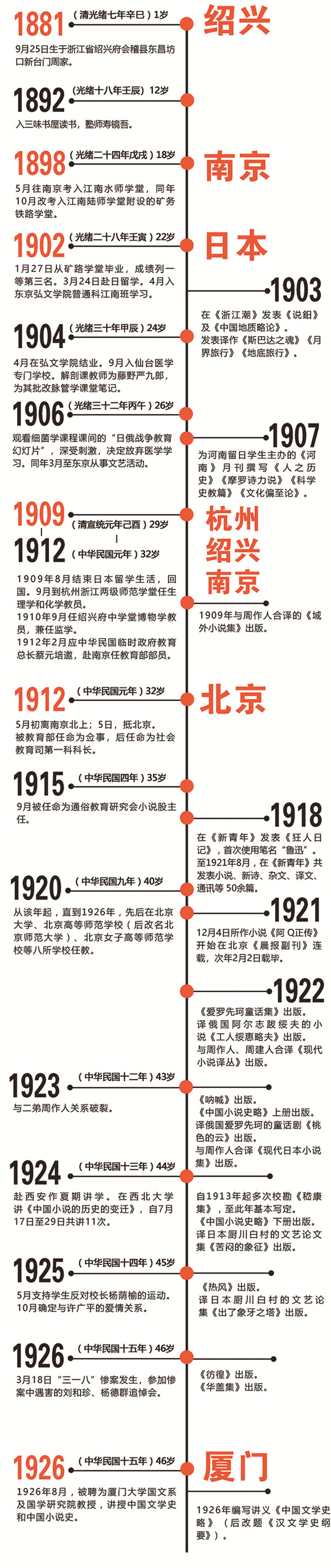 1898年,魯迅懷著“走異路,逃異地,去尋求別樣的人們”的想法,告別家鄉(xiāng),出門(mén)遠(yuǎn)行,在南京學(xué)習(xí)4年后,獲得官費(fèi)留學(xué)的資格,赴日本留學(xué)。學(xué)成歸國(guó)之后,魯迅又應(yīng)蔡元培之邀,在南京的民國(guó)教育部任職。在南京、日本時(shí)期,是周樹(shù)人成長(zhǎng)為魯迅的關(guān)鍵時(shí)期,是文學(xué)家、思想家、革命家魯迅的前傳。