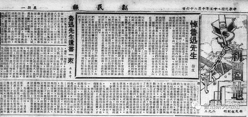 在《魯迅先生遺書一束》文后,《新民報(bào)》編輯部還附錄了魯迅致李秉中的21通信札(26),排版順序如下:八月廿八日夜(1924年)、九月二十八夜(1924年)、五月二十六日之夜(1924年)、二十四日夜(1924年9月)(載1936年10月27日第4版);十月二十日夜(1924年)、三月六日(1931年)(載1936年10月28日第4版);四月三日(1931年)、四月十二夜(1930年)、四月十五日(1931年)(載1936年10月30日第4版);五月三日(1932年)、九月三日(1930年)(載1936年10月31日第4版);無落款日期信札(應(yīng)寫于1932年2月,具體日期待考)、四月九日(1925年)(載1936年11月1日第4版);三月二十夜(1932年)、六月四夜(1932年)(載1936年11月3日第4版);五月三夜(1930年)、六月二十三夜(1931年)(載1936年11月4日第4版);二月四日(1931年)、二月二十六日(1924年)、二月十八日(1931年)(載1936年11月6日第4版);六月十七日(1926年)(載1936年11月7日第4版)。此外,《新民報(bào)》還刊有魯迅贈(zèng)李秉中照片一幀(載1936年10月27日,取名為《魯迅六年前與海嬰合影》),并六月十七日(1926年)魯迅致李秉中信札的底稿(載1936年10月28日第4版,取名為《魯迅遺書底稿》)。需進(jìn)一步補(bǔ)充說明的是,《魯迅六年前與海嬰合影》這幀照片并不是魯迅直接寄送給李秉中的,而是通過北平的“朱寓收轉(zhuǎn)”之后再處理的。?顯然,此照片經(jīng)朱安之手轉(zhuǎn)寄,于1932年6月送達(dá)李秉中的手中。而在李秉中致魯迅的留存信札中,他曾多次提到并表達(dá)致意的“師母”,還包括了魯迅的原配朱安。李秉中在文中提及的另外兩幀照片(1927年魯迅送給他的照片和1930年魯迅送給他的周海嬰單人照),《新民報(bào)》編輯部并沒有公布出來,實(shí)在令人覺得可惜。