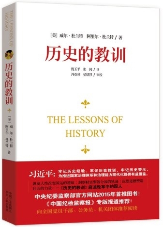 2015年伊始,中央紀(jì)委監(jiān)察部網(wǎng)站推介了“新年第一書”——《歷史的教訓(xùn)》。本書是美國著名學(xué)者、終身哲學(xué)教授、普利策獎(jiǎng)(1968年)和自由勛章(1977年)獲得者威爾·杜蘭特及其夫人阿里爾·杜蘭特的代表作。