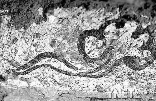 2000年老山漢墓出土的大型漆案,長290厘米、寬100厘米。黑地紅彩,間雜其他顏色。瑞獸與云紋相結(jié)合,云興霞蔚。形象生動,畫工細(xì)膩,線條十分流暢。