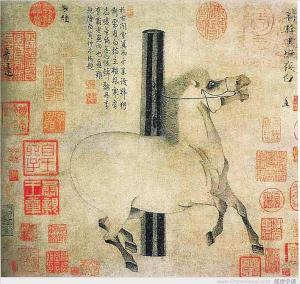 在古代,馬是人類最為重要的生活和生產(chǎn)伙伴,因此古人常用“千里馬”來比喻杰出的人才,也常用馬來象征顯赫的功勛,譬如周天子的“八駿”、唐太宗“昭陵六駿”,說的雖然是馬,褒揚(yáng)的卻是不世功業(yè)。正因?yàn)轳R具有如此重要的地位,所以文人墨客一直對(duì)其情有獨(dú)鐘,留下了許許多多吟詠的篇章,其中以唐人最多,據(jù)說《全唐詩》中專寫馬的詩就有120多首,而零散寫馬的詩句,更如過江之鯽,數(shù)也數(shù)不清了。