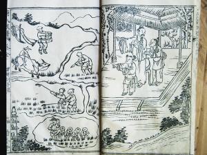 民國十三年(1924年),攀丹《唐氏族譜》中“耕讀傳家”的畫面。 海南日報記者 陳耿 攝