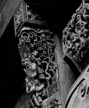 中國講求“天人合一”,崇高自然,與自然相融相生,所以,幾千年來,中國建筑一直以木構(gòu)架建筑房舍宮府,形成了我國獨特的木建筑。建筑木雕則始于對部分構(gòu)件的裝飾加工,使之符合于建筑審美的需要,久而久之,便成了建筑中不可缺少的部分,并融于整體建筑中,與白墻青瓦相呼應(yīng),構(gòu)成了和諧統(tǒng)一的整體建筑外觀。同時,木雕的形象與庭園草木、室內(nèi)陳設(shè)家具相互映襯,體現(xiàn)了中國人特有的精神與審美趣味。