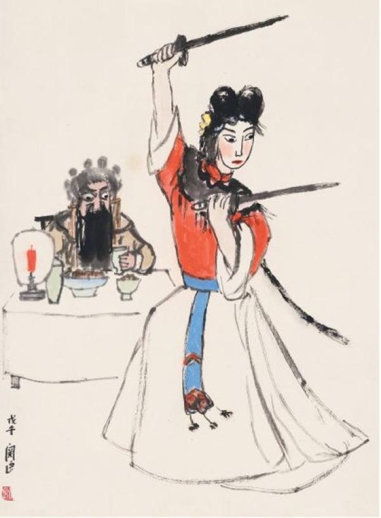 對于20世紀(jì)早期藝術(shù)家而言,他們真切領(lǐng)悟此人生大戲的真味。林風(fēng)眠、關(guān)良、丁衍庸、朱屺瞻、葉淺予等第一代畫家,致力于中西融合實(shí)踐,并在那個(gè)特定的歷史時(shí)期,形成“中西畫并陳”現(xiàn)象。其中他們以戲曲人物畫作為一種有效的探索樣式,將本土藝術(shù)的寫意性與西方繪畫的表現(xiàn)性實(shí)現(xiàn)契合;將本土藝術(shù)的程式化與西方繪畫的抽象性實(shí)現(xiàn)會通,出現(xiàn)的背后是文化視角和文化價(jià)值的重新修正。“戲曲人物畫”現(xiàn)象是中國美術(shù)家參照西方藝術(shù)對中國藝術(shù)的重新思考,體現(xiàn)出的民族藝術(shù)復(fù)興浪潮是對中西藝術(shù)價(jià)值重新審定的結(jié)果,開始以新的視角和深度,觸及關(guān)于戲曲人物畫的民族性問題,即是在于求索所謂“中國向來的靈魂”,以重建振興中國繪畫的信心。在20世紀(jì)中后期以來,本土的戲曲人物畫藝術(shù)有了新的推進(jìn),隨著藝術(shù)思潮的多元和開放,戲曲之中的臉譜、行頭、身段、動作、表情、唱腔、招式等元素,賦予了繪畫形式諸多的形式靈感和豐富的表現(xiàn)性。諸多畫家在林風(fēng)眠、關(guān)良等先輩遺風(fēng)之中繼往開來,將中國戲曲人物推向了一個(gè)歷史新高峰。其后又有陳九等后起實(shí)力派人物,潛心求索,構(gòu)筑學(xué)術(shù)平臺,注重學(xué)術(shù)推廣,將戲曲人物畫的個(gè)體化的情趣雅賞之舉,聚焦為社會關(guān)注的藝術(shù)資源。