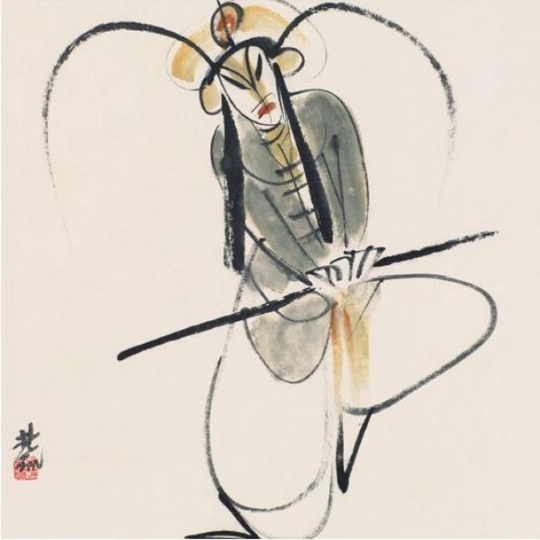 所謂“千秋如戲,萬象入畫”,在戲曲人物畫家筆下的一桌兩椅、一招一式的形象背后,我們能夠深深感受到“中國向來的靈魂”的寫意意象和表現(xiàn)色彩。