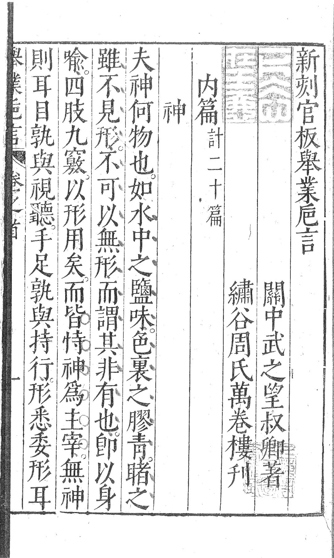 武之望、陸翀之《新刻官板舉業卮言》書影,明萬歷二十七年周曰校刻本