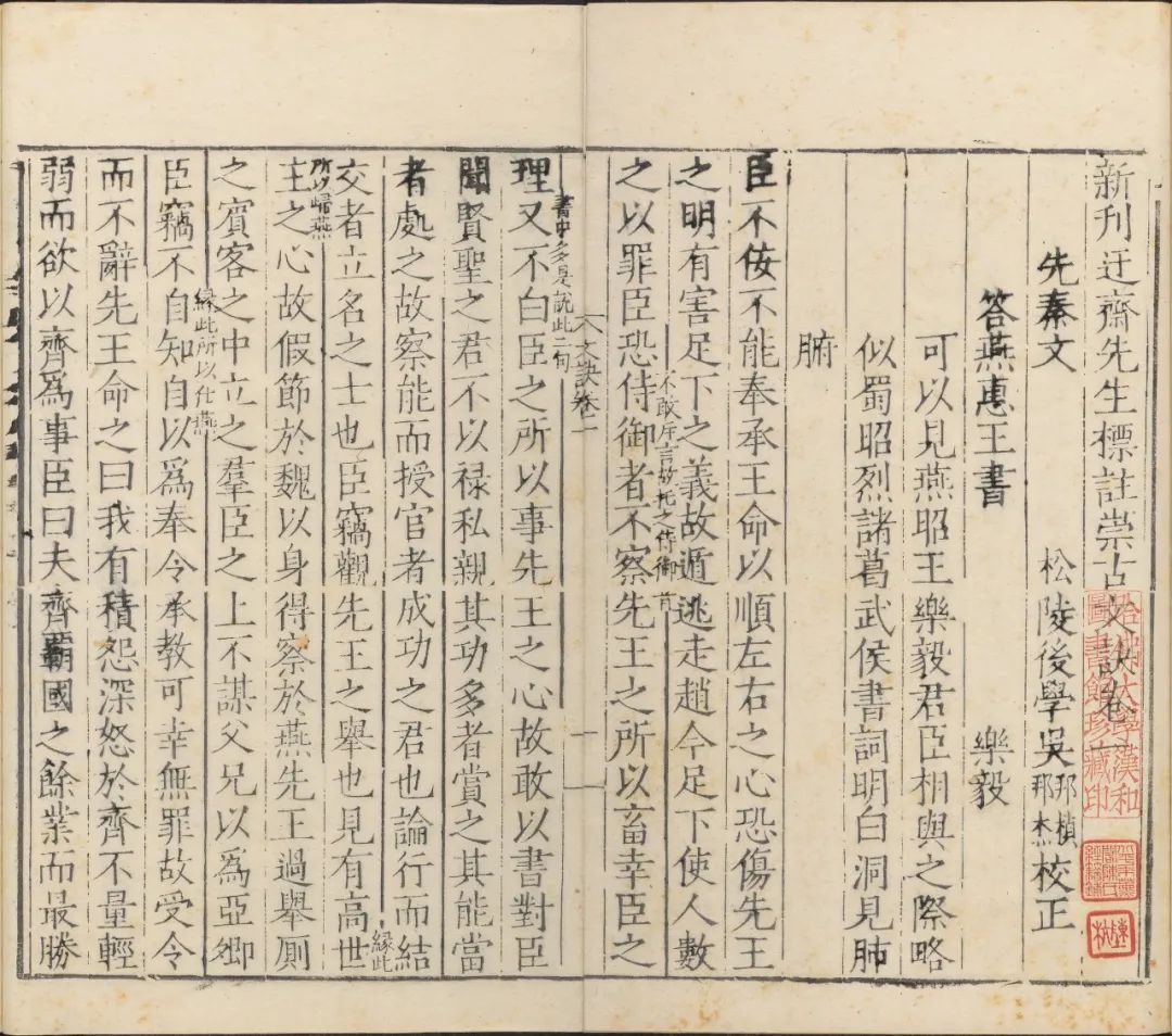 樓昉《新刊迂齋先生標注崇古文訣》書影,明嘉靖間刻本