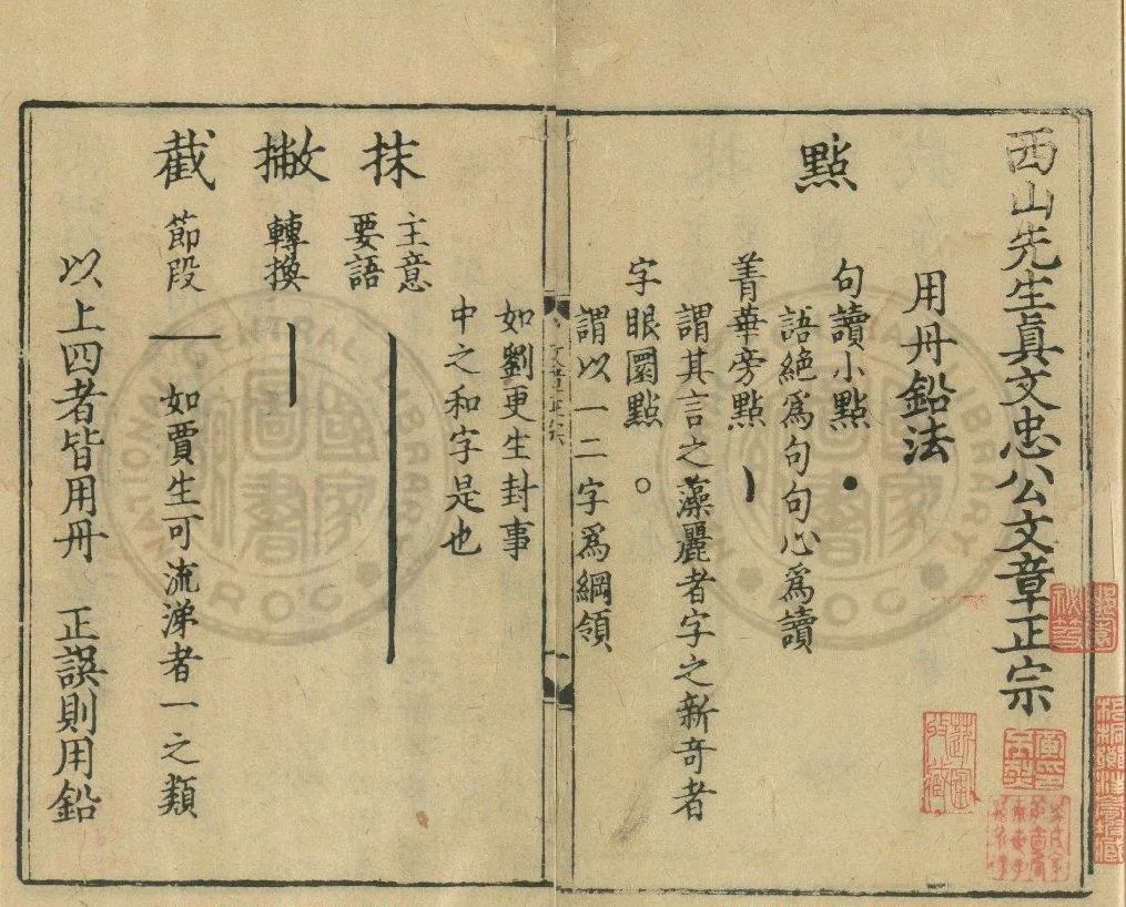 《用丹鉛法》,真德秀《西山先生真文忠公文章正宗》,南宋末年刻配補元刻本
