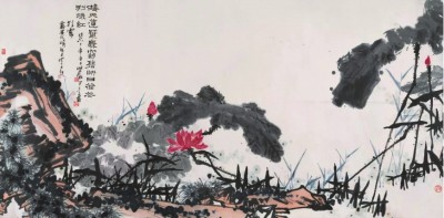 《映日荷花別樣紅圖》潘天壽 紙本 設(shè)色 縱137.5厘米 橫272.5厘米 1960年中國美術(shù)學(xué)院美術(shù)館藏