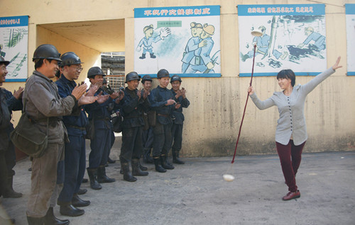 新礦集團黑溝煤業公司女工委組織安全文藝小分隊慰問一線職工 來源:新礦集團黑溝煤業公司 作者:歐陽寶塔 蘇曼麗 韓育宏 時間:2013-10-21 【字體:小 大】 為充分發揮礦井安全生產二道防線的作用,10月17日下午,山東能源新礦集團黑溝煤業公司女工委組織家屬協管員與文藝骨干,組成安全文藝小分隊,為上下井的一線職工送上了以決戰四季度合力保安全為主題的文藝演出,叮囑廣大職工緊繃安全弦,按章操作,確保實現四季度安全生產的各項工作目標。圖為該煤業職工表演的雜技節目《舞流星》。 智能標簽: 新礦集團 黑溝煤業公司 相關內容 分享到: 【打印正文】