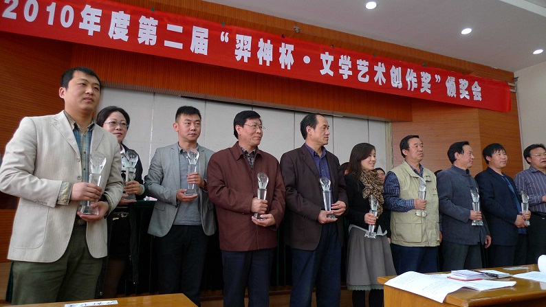 第二屆羿神杯文學(xué)藝術(shù)創(chuàng)作獎(jiǎng)評比工作,從2010年下發(fā)文件征稿以來,共收到獲得各種省級和國家級榮譽(yù)、獎(jiǎng)項(xiàng)作品160余件,其中文學(xué)作品52件、書法作品15件、美術(shù)作品16件、攝影作品45件、音樂舞蹈作品32件。在此基礎(chǔ)上,征求多方意見,專門召開了作品通報(bào)會(huì),各專業(yè)協(xié)會(huì)組織了初評工作,文聯(lián)各協(xié)會(huì)負(fù)責(zé)人組成的評委會(huì)進(jìn)行了終評,本次共評出特別獎(jiǎng)1名,金獎(jiǎng)5名,銀獎(jiǎng)9名,銅獎(jiǎng)14名,提名獎(jiǎng)17名,群眾文化文學(xué)藝術(shù)工作優(yōu)秀組織獎(jiǎng)10名。