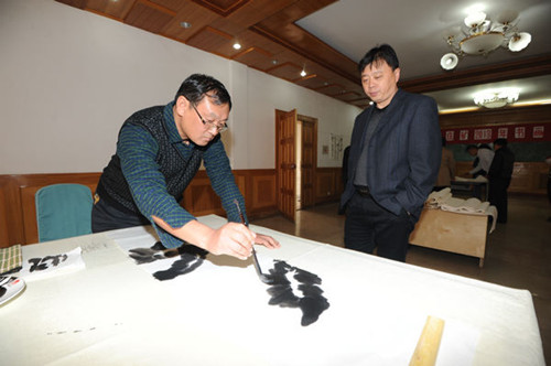 11月3日,由安徽淮北礦業朱莊煤礦工會、文學藝術界聯合會、書畫協會聯合舉辦的2013年書畫筆會在文化活動室舉行。筆會上,近20位書畫愛好者揮毫撥墨,切磋技藝,一幅幅書法、花鳥、人物、山水國畫作品風格各異,精彩紛呈,抒發了對和諧礦區幸福美好生活的熱愛之情,體現了鮮明的煤礦文化特色。