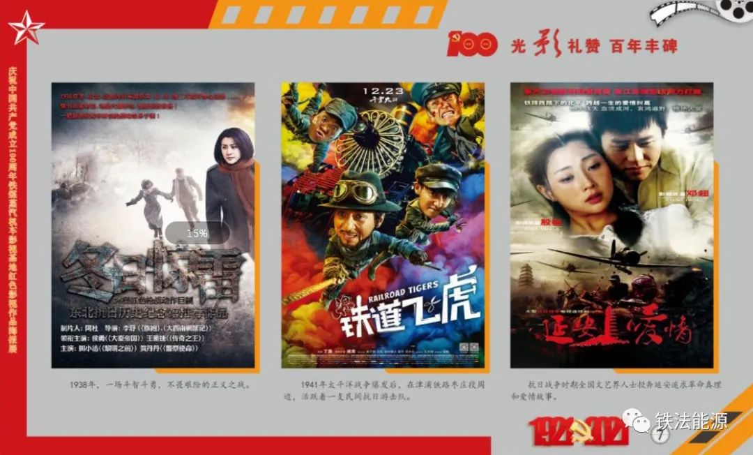 用史實說話,傳播紅色文化。蒸汽機車博物館從在景區取景拍攝的百余影視作品中,精心遴選出反映黨史、新中國史、改革開放史、社會主義發展史和新時代人民幸福生活的《先鋒1931》《百團大戰》《東方》《鐵流1949》《建國大業》《建黨偉業》《我的戰爭》《跨過鴨綠江》《國家孩子》《毛豐美》等優秀影視作品海報,打造精品展陳,為黨史學習教育提供生動形象的教材。如詩如歌的紅色影視海報,承載著厚重的紅色記憶,以直觀可視、生動鮮活、感染力強、易于傳播的特質,增強對百年大黨篳路藍縷開創偉業的感性認知,亦成為禮贊建黨百年、弘揚家國情懷的有力體現。