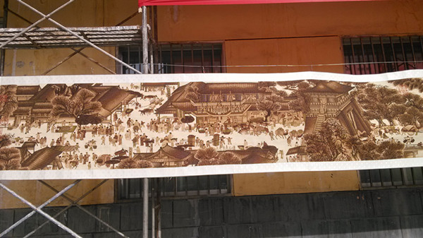 礦黨委書記王連合在開幕式上講話。在展出現場,一幅長約19米的《清明上河圖》十字繡作品格外搶眼,引起了干部職工的圍觀。《清明上河圖》是我國十大傳世名畫之一,描繪了北宋時期都城東京(今河南開封)汴河兩岸的自然風光和繁榮景象,場面浩大,人物眾多,一針一線繡起來非常費時費力。據悉,此幅《清明上河圖》十字繡作品,由5人歷經兩年半時間繡制而成,實屬鴻篇巨制,令人贊嘆。