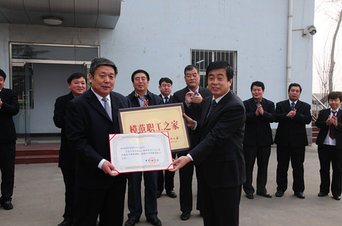 12月18日上午,中華全國總工會第十六屆執行委員會委員、冀中能源峰峰集團公司黨委副書記、工會主席郭志武到新三礦為該礦榮獲全國模范職工之家舉行授牌儀式。