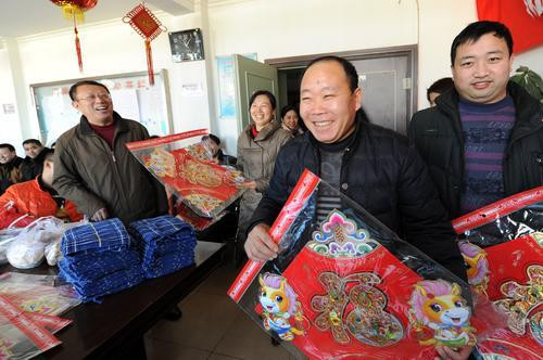春節臨近,兗礦集團興隆莊煤礦組織女工協管員在15個井下一線單位班前會上,開展迎新春、送祝福、祝安全、保平安區隊聯誼慰問活動,把大紅的福字和繡有安全為天、祝你平安字樣的毛巾送到一線職工手中,為他們送上節日祝福和安全叮囑,用愛心和親情筑起礦井安全生產的第二道防線。據悉,活動將持續開展到春節過后。圖為慰問活動場景。
